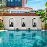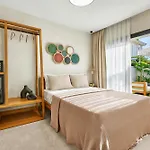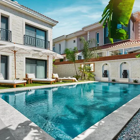 Meruno Alacati Hotell Çeşme, som ligger inom 10 minuter med bil från Staden Erythrai från antiken, har 8 rum med utsikt över trädgården.